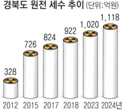 ±¹³» ¿øÀüÀÇ Àý¹ÝÀÌ ¸ô·Á ÀÖ´Â °æºÏµµÀÇ °æ¿ì, 2012³â ±âÁØÀ¸·Î 328¾ï¿øÀ» Áö¿ªÀÚ¿ø½Ã¼³¼¼·Î °ÅµÖµé¿´Áö¸¸ ¼¼À²ÀÌ 2¹è·Î ¿À¸§¿¡ µû¶ó ³»³âºÎÅÍ ´Ü¼ø Ãß°èÇØµµ 656¾ï¿øÀ¸·Î Áö¹æ¼¼°¡ ´Ã¾î³ª°Ô µÈ´Ù.