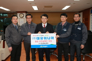 À̳¯ Àü´ÞµÈ ¼º±ÝÀº ¢ß´ëÀ¯À§´Ï¾ÆÀÇ Á÷¿ø 582¸íÀÌ ½Ê½ÃÀÏ¹Ý ¸ðÀº ¼º±Ý°ú ȸ»ç Áö¿ø±ÝÀ» Æ÷ÇÔÇØ ÃÑ 23,000õ ¿øÀ¸·Î, Ãæ³²»çȸº¹Áö°øµ¿¸ð±Ýȸ¸¦ ÅëÇØ ÇâÈÄ ¾Æ»ê½Ã Àú¼ÒµæÃþÀ» À§ÇÑ ´Ù¾çÇÑ »ç¾÷ÀÇ Àç¿øÀ¸·Î Ȱ¿ëµÉ ¿¹Á¤ÀÌ´Ù.