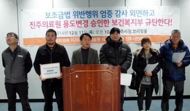 ´ëÃ¥À§´Â À̳¯ ÁøÁÖ½Ãû ºê¸®Çηë°ú º¹ÁöºÎ ¾Õ¿¡¼ °¢°¢ ±âÀÚȸ°ßÀ» ¿°í "ÁøÁÖÀÇ·á¿ø ¿ëµµº¯°æ ½ÂÀÎÀ» öȸÇÏ°í °æ³²µµÀÇ º¸Á¶±Ý¹ý À§¹Ý ÇàÀ§¿¡ ´ëÇØ ¾öÁ¤ÇÑ °¨»ç¸¦ ½ÃÇàÇ϶ó"°í Ã˱¸Çß´Ù. ´ëÃ¥À§´Â °æ³²µµ Á¶·Ê¿¡ µû¶ó µµ¹Î 200¸í ÀÌ»ó ¼¸íÀ» ¹Þ¾Æ º¹ÁöºÎ¿¡ Á¦ÃâÇÏ¸é º¹ÁöºÎ´Â ¸íºÎ ¿¶÷°ú ½ÉÀÇȸ ½ÉÀǸ¦ °ÅÃÄ 60Àϰ£ °¨»ç¸¦ ÇÏ°Ô µÈ´Ù°í ¼³¸íÇß´Ù. ÀÌ¿¡ µû¶ó °¨»ç °á°ú´Â ³»³â 3¿ù²² ³ª¿Ã °ÍÀ¸·Î ´ëÃ¥À§´Â Àü¸ÁÇß´Ù.