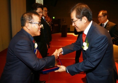 2014³â °æ»ó³²µµ Áö¿ª°Ç¼³»ê¾÷ ¹ßÀü ¿¬Âùȸ¿¡¼­ È«ÁØÇ¥ µµÁö»ç°¡ 'ÀÚ¶û½º·¯¿î °Ç¼³Àλó' ¼ö»óÀÚ¿¡°Ô »óÆÐ¸¦ Àü´ÞÇÏ°í ¾Ç¼ö¸¦ Çϰí ÀÖ´Ù.