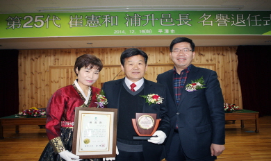 ÆòÅýà Æ÷½ÂÀ¾ÀÇ Á¦25´ë ÃÖÇåÈ À¾ÀåÀÇ ¸í¿¹ÅðÀÓ½ÄÀÌ Áö³ 16ÀÏ 11½Ã Æ÷½ÂÀ¾»ç¹«¼Ò ´ëȸÀǽǿ¡¼ °¡Á· ¹× Ä£Áö, °øÀ籤 ÆòÅýÃÀå, ±è±â¼º, ÃÖÁß¾È ½ÃÀÇ¿ø µî ¿ÜºÎ ÃÊûÀλç, Áö¿ª ±â°ü․´ÜüÀå µî 150¿©¸íÀÌ Âü¼®ÇÑ °¡¿îµ¥ ¼ºÈ²¸®¿¡ °³ÃֵƴÙ.