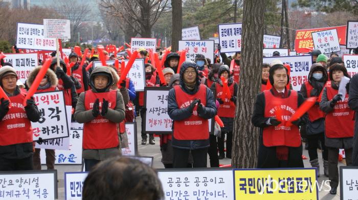 ¿ÀÈÄ, ¡®°³ÀÎ(¹Î°£)½Ã¼³ ³ëÀÎÀå±â ¿ä¾ç±â°ü ¿î¿µÀÚ¡¯µéÀº ´ë±Ô¸ð ½ÃÀ§¸¦ ³¡³½ ÈÄ ±¹È¸ÀÇ»ç´ç¿¡¼´Â ÀÌ Á¶·Ê¿¡ ºÎ´çÇÔÀ» ¾Ë¸®±â À§ÇÑ ±âÀÚȸ°ßÀ» ¿¾ú°í, µÚÀÌ¾î ±¹È¸ÀÇÀå½Ç¿¡¼ ź¿ø¼¸¦ Á¦ÃâÇß´Ù.
