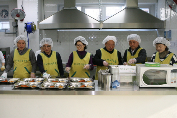 [¾È»ê½ÃÀÇȸ ÀÇ¿øµéÀÌ 24ÀÏ ¿Íµ¿Á¾ÇÕ»çȸº¹Áö°ü ¹«·á±Þ½Ä¼Ò¿¡¼­ ¹è½ÄºÀ»ç¸¦ ÆîÃÆ´Ù]