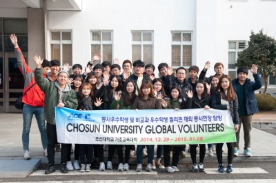 Á¶¼±´ëÇб³´Â ±¹Á¦È­ ½Ã´ë¸¦ ¸Â¾Æ ÇлýµéÀÌ ¼¼°è °¢±¹À» ´ë»óÀ¸·Î ºÀ»çȰµ¿°ú ¹®È­ üÇèÀ» ÅëÇØ Àηù¾Ö¸¦ ±¸ÇöÇϰí Á¶¼±´ëÇб³¸¦ ³Î¸® È«º¸Çϱâ À§ÇØ 2001³âºÎÅÍ ¹æÇÐ ±â°£¿¡ ±¹Á¦ºÀ»ç´ÜÀ» ÆÄ°ßÇϰí ÀÖ´Ù. Âü°¡Çлý¿¡°Ô´Â Çʸ®ÇÉ ÇöÁö ±³À°Ã»¿¡¼­ ¹ßÇàµÇ´Â ±¹Á¦ ºÀ»çÁõÀ» ¹ß±ÞÇÑ´Ù.