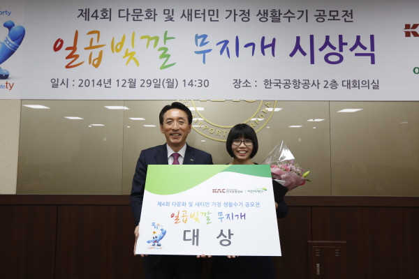 ÀÌ ¿Ü¿¡µµ À½½Ä¹®È­ÀÇ Â÷ÀÌ, ¾Ë¶ãÇÑ ½Ã¾î¸Ó´Ï¿ÍÀÇ ½ÃÁý»ìÀÌ, ±¸Á÷(Ï´òÅ)ÀÇ ¾î·Á¿ò µî ´Ù¾çÇÑ ¿¡ÇǼҵ尡 ´ã±ä ÀüÀº¼ø ¾¾(»õÅ͹Î, 37¼¼), ¹Ì³ª¹Ì Ä«³ªÄÚ ¾¾(ÀϺ», 37¼¼), ·ù¡ ¾¾(Áß±¹, 35¼¼) µîÀÇ ¼ö±âµéµµ ¼ö»óÀÇ ¿µ±¤À» ¾È¾Ò´Ù. À̹ø °ø¸ðÀüÀº ´Ù¹®È­ ¹× »õÅ͹Π°¡Á·ÀÇ À̾߱⸦ ÅëÇØ À̵鿡 ´ëÇÑ »çȸÀÇ °ü½ÉÀ» ³ôÀÌ°í ±¹¹ÎÀνÄÀ» ȯ±â½ÃŰ´Â °è±â¸¦ ¸¶·ÃÇϰíÀÚ Áö³­ 2011³âºÎÅÍ Çѱ¹°øÇ×°ø»ç¿Í ¾î¸°ÀÌÀç´ÜÀÌ ¼ÕÀ» Àâ°í ÃßÁøÇϰí ÀÖ´Â »ç¾÷ÀÌ´Ù.