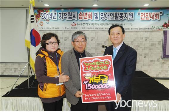 Çϳ²½ÃÀå¾ÖÀκ¹Áöȸ(ȸÀå ÃÖ»óÈ£) ÁÖÃÖ·Î ¿¸° À̳¯ Çà»ç¿¡¼ Áöȸ´Â Àå¾ÖÀÎȰµ¿º¸Á¶ÀεéÀÌ 1³â°£ ¸ðÀº ¼º±Ý 150¸¸¿øÀ» ÀÌ ½ÃÀå¿¡°Ô Àü´ÞÇß´Ù.