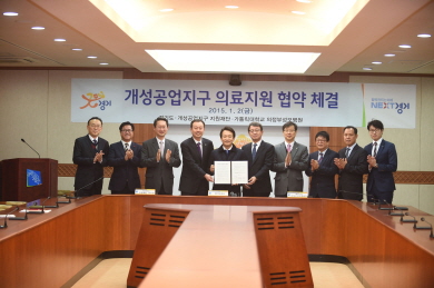 ³²°æÇÊ °æ±âµµÁö»ç¿Í ÀüÇØ¸í °¡Å縯´ëÇб³ ÀÇÁ¤ºÎ¼º¸ðº´¿øÀå, ±è³²½Ä °³¼º°ø¾÷Áö±¸Áö¿øÀç´Ü ÀÌ»çÀåÀº 2ÀÏ ¿ÀÀü 10½Ã 50ºÐ °æ±âµµ ºÏºÎû »óȲ½Ç¿¡¼ ¡®°³¼º°ø¾÷Áö±¸ ºÎ¼ÓÀÇ¿ø ÀÇ·áÁö¿ø¡¯ Çù¾àÀ» ü°áÇß´Ù.