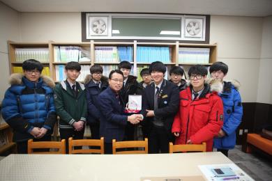 Á¤½ÂÇö ÀÇ¿øÀº Áö³ 12¿ù 31ÀÏ ÀÇȸ µµ¼ÀÚ·á½Ç¿¡¼ ¾È»ê°íµîÇб³ ÇлýÀÇȸ ÀÇÀå ±èµµ¿¬ ÇлýÀ» ºñ·ÔÇÑ ÇлýÀÇȸ ¼Ò¼Ó 9¸íÀÇ ÇлýµéÀÌ Âü¼®ÇÑ °¡¿îµ¥ À̰°ÀÌ °¨»çÆÐ¸¦ Àü´Þ¹Þ¾Ò´Ù.