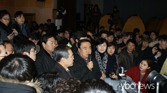 ¹®Èñ»ó »õÁ¤Ä¡¹ÎÁÖ¿¬ÇÕ ºñ»ó´ëÃ¥À§¿øÀåÀº ´ëÇǼҿ¡ ã¾Æ°¡ ÀÌÀç¹Î°ú ÇâÈÄ °Åó‧º¸»ó ¹®Á¦ µîÀ» ³íÀÇ Çϰí ÇÇÇØÁֹεéÀ» À§·ÎÇß´Ù. "°í»ýÀÌ µÇ´õ¶óµµ Âü°í Àß ¼ö½ÀÇØ ´Þ¶ó. ´ëÃ¥ÀÌ ¼¼¿öÁú ¶§±îÁö ½Ã¹Î Àüü°¡ ¹Ï´Â °ÍÀº ¿©·¯ºÐ »Ó"À̶ó°í °ü°èÀڵ鿡°Ô ´çºÎÇÑ µÚ "Á¤ºÎ¿¡ Ã˱¸ÇØ ¿ì¸®°¡ ÇÒ ¼ö ÀÖ´Â ÀÏÀ» ´ÙÇϰڴÙ"°í ¸»Çß´Ù.