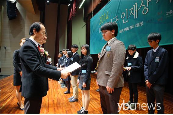 ±ºÆ÷°íµîÇб³ À̼¼¿µ(3³â¡¤»çÁø ¿À¸¥ÂÊ)±ºÀÌ `2014 ´ëÇѹα¹ ÀÎÀç»ó` ¼ö»óÀÚ·Î ¼±Á¤µÆ´Ù. ±³À°ºÎ°¡ ÁÖÃÖÇϰí Çѱ¹°úÇÐâÀÇÀç´ÜÀÌ ÁÖ°üÇÏ´Â '´ëÇѹα¹ ÀÎÀç»ó' Àº ´Ù¾çÇÑ ºÐ¾ß¿¡¼ ÀÚ½ÅÀÇ Àû¼º°ú Àç´ÉÀ» ã¾Æ Ź¿ùÇÑ ¼º°ú¸¦ º¸¿´°Å³ª, ŸÀÎÀ» ¹è·ÁÇϰí Àç´ÉÀ» ³ª´®À¸·Î½á ±× °¡Ä¡¸¦ ºû³½ ÀÎÀç¿¡°Ô ¼ö¿©µÇ´Â »óÀÌ´Ù.