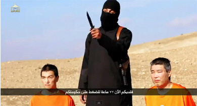 IS´Â 20ÀÏ ÀϺ»ÀÎ ÀÎÁú 2¸íÀ» Àâ°í »ìÇØÇϰڴٰí Çù¹ÚÇÏ´Â µ¿¿µ»óÀ» °ø°³Çß´Ù. ÀÌ´Â ¾Æº£ ½ÅÁ¶ ÀϺ» ÃѸ®°¡ IS¿Í ½Î¿ì´Â Áßµ¿ ±¹°¡µéÀ» À§ÇØ 2¾ï´Þ·¯¸¦ Áö¿øÇϱâ·Î ÇÑ °Í¿¡ ´ëÇØ ¸Â´ëÀÀÇϱâ À§ÇÑ °ÍÀ¸·Î ¾Ë·ÁÁ³´Ù.