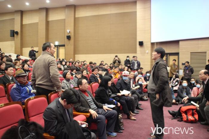 »çȸÀÚ°¡ ¿¬´Ü¿¡ ³ª¿Í ¼¼¹Ì³ª ½ÃÀÛÀ» ¾Ë¸± ¶§ ¹æÃ»¼® ÀϺΠÂü¼®ÀÚµéÀº ¸¶½ºÅ©¸¦ ¾²°í ¿¬´ÜÀ» Àå¾ÇÇÏ·Á°í ½ÃµµÇß°í, Å« °íÇÔ¼Ò¸®¿Í ÇÔ²² Çè¾ÇÇÑ ºÐÀ§±â°¡ ¿¬ÃâµÆ´Ù.