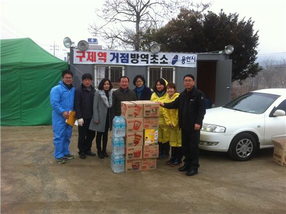 ¿ëÀνÃÁÖ¹ÎÀÚÄ¡¿¬ÇÕȸ(ȸÀå ¹ÎÃæ½Ä ¿Ü 4¸í)´Â 23ÀÏ ¿ëÀνà ±¸Á¦¿ª ¹æ¿ªÃÊ¼Ò 9°³¼Ò¸¦ ¹æ¹®ÇØ ¹æ¿ªÈ°µ¿¿¡ Àü³äÇϰí ÀÖ´Â ±Ù¹«ÀÚ °Ý·Á¿Í 100¸¸¿ø »ó´çÀÇ À§¹®Ç°(ÄŶó¸é ¿Ü 2Á¾) Àü´ÞÇß´Ù