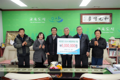 ¿À»ê ¿À»ö½ÃÀå »óÀÎȸ´Â Áö³ 23ÀÏ Áö¿ª ³» ¾î·Á¿î ÇлýµéÀ» À§ÇØ ½á´Þ¶ó¸ç ¾ÖÇâÀåÇÐ±Ý 500¸¸¿øÀ» ¿À»ê½Ã¿¡ ±âŹÇß´Ù.