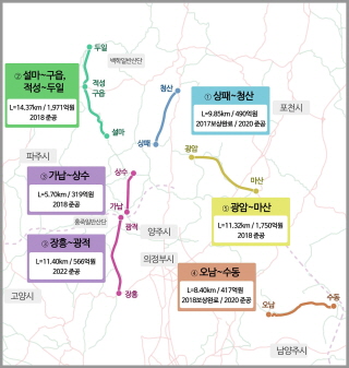 °æ±âµµ´Â 5°³ µµ·Î»ç¾÷ 61§° ±¸°£À» Á¶±â ¿Ï°øÇϱâ À§ÇØ ¿ÃÇØºÎÅÍ 2019³â±îÁö µµºñ 4,148¾ï ¿øÀ» ÁýÁß ÅõÀÚÇÒ °èȹÀ̸ç, °¡³³~»ó¼ö 5.7§°, ¼³¸¶~±¸À¾ 8.0§°, Àû¼º~µÎÀÏ 6.3§°, ±¤¾Ï~¸¶»ê 11.3§° µî 4°³ »ç¾÷ 31.3§°´Â ¿À´Â 2018³â±îÁö ÁذøÇÒ ¿¹Á¤ÀÌ´Ù.
