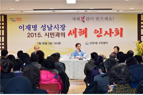 ±âÁ¸ ÁøÇà¹æ½Ä¿¡¼ ¹þ¾î³ª ÀÌÀç¸í¼º³²½ÃÀåÀº º»ÀÎÀ» ¡®¼º³²½Ã 4³â °è¾àÁ÷ °ø¹«¿ø ¼º³²1È£ ¸Ó½¿¡¯À̶ó°í ¸»Çϰí 2015³â »õÇØ Àλçȸ ºÐÀ§±â¿¡ ¸ÂÃß¾î ÇѺ¹ Â÷¸²À¸·Î ¼º³²ÀÇ ÁÖÀÎÀÎ ³»ºóÀ» Á÷Á¢ ¼Ò°³ÇÏ°í »õÇØÀλçȸ ȯ¿µ ²É´Ù¹ßÀ» ¹ÞÀ»¶§µµ ÀÚ¼¼¸¦ ³·Ãç¼ ¾î¸°ÀÌ Å°¿¡ ¸ÂÃß¾î ¹Þ´Â ¸ð½À µî ¸Ó½¿½ÃÀåÀÇ ¸ð½ÀÀ» º¼ ¼ö ÀÖÀ¸¸ç ÁøÇàÇÏ´Â ³»³» ÈÆÈÆÇÑ ºÐÀ§±â¿¡¼ ÀÚ¿¬½º·´°í ¿¶í Åä·ÐÀ¸·Î °èȹÇÑ ½Ã°£ÀÌ ºÎÁ·ÇÒ Á¤µµ·Î ¾ËÂù »õÇØÀλçȸ¸¦ ÃßÁøÇϰí ÀÖ´Ù.