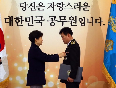 ¹Ú´ëÅë·ÉÀ¸·Î ºÎÅÍ Á÷Á¢ Á¦1ȸ ¡°´ëÇѹα¹ °ø¹«¿ø»ó¡± ´ëÅë·É ÈÆÀåÀ» ¼ö¿© ¹Þ°í ÀÖ´Â Â÷°æÃµ ¼Ò¹æÀ§