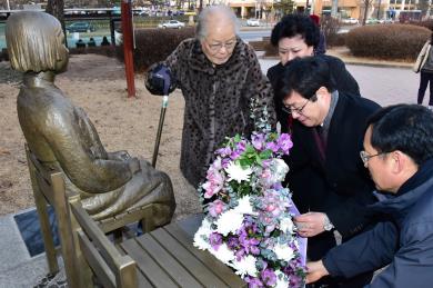 ¿°Å¿µ ¼ö¿ø½ÃÀåÀÌ Áö³­ 3ÀÏ ¼ö¿ø½Ã ¿Ã¸²ÇȰø¿ø(±Ç¼±±¸ ±Ç¼±µ¿)¿¡ °Ç¸³µÈ ¼ö¿øÆòÈ­ºñ(ÆòÈ­ÀÇ ¼Ò³à»ó)À» ã¾Æ Áö³­´Þ 31ÀÏ ÀϺ»±º À§¾ÈºÎ ÇÇÇØÀÚ °í(ͺ) ¹ÚÀ§³² ÇÒ¸Ó´Ï(1922³â»ý, ¸¸93¼¼, ´ë±¸ °ÅÁÖ)ÀÇ »ç¸Á¿¡ ±íÀº ¾ÖµµÀÇ ¶æÀ» Ç¥Çß´Ù.