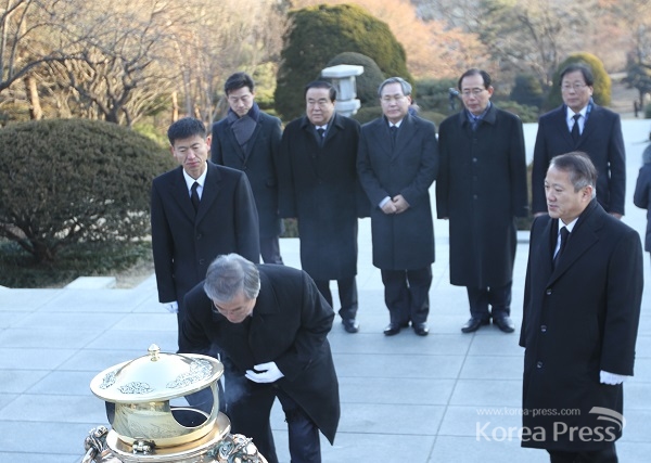 ¹®ÀçÀÎ »õÁ¤Ä¡¹ÎÁÖ¿¬ÇÕ ½ÅÀÓ ´ëÇ¥´Â 9ÀÏ ¿ÀÀü 8½Ã ÃëÀÓ ÈÄ Ã¹ Çຸ·Î ±¹¸³ ÇöÃæ¿øÀ» ã°í ÇöÃæÅ¾°ú °í ±è´ëÁß Àü ´ëÅë·É ¹¦¿ª Âü¹è¿¡ ÀÌ¾î °í À̽¸¸¡¤¹ÚÁ¤Èñ Àü ´ëÅë·ÉÀÇ ¹¦¿ªÀ» Â÷·Ê·Î Âü¹èÇß´Ù.