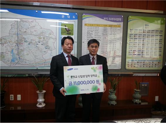 À̳¯ ±âŹ½Ä¿¡¼ »ï¼ºSDI(ÁÖ) ³ë°æ¹Î ºÎÀåÀº ¡°Àú¼Òµæ °¡±¸ÀÇ ÀÚ³à °¡¿îµ¥ ÁßÇб³ ÀÔÇÐÀ» ¾ÕµÐ û¼Ò³âÀ» À§ÇÑ ÀåÇбÝÀ¸·Î »ç¿ëÇØ ´Þ¶ó¡±¸ç ¡°ÀÛÀº Á¤¼ºÀÌÁö¸¸ ¾î·Á¿î ȯ°æ¿¡¼µµ Çо÷¿¡ Á¤ÁøÇÏ´Â ¸ð¹ü û¼Ò³âµé¿¡°Ô µµ¿òÀÌ µÇ±æ ¹Ù¶õ´Ù¡± °í ÀüÇß´Ù.