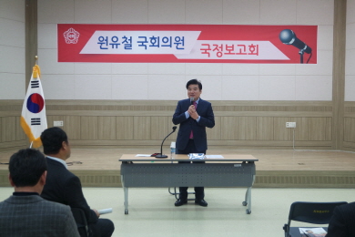 ¿øÀ¯Ã¶ ÀÇ¿øÀº ±¹Á¤º¸°íȸ¸¦ ÅëÇØ Áö¿ªÀÇ ½Ã¹Îµé¿¡°Ô ÆòÅÃÀÇ ±¹Ã¥»ç¾÷ ÇöȲ, ÀÔ¹ýȰµ¿, °ø¾à»çÇ×, Áý´Ü¹Î¿ø ÃßÁø»çÇ× µî ¾÷¹«¼º°ú¿¡ ´ëÇØ ¼³¸íÇϰí, Áö¿ªÀÇ ¿©·Ð°ú ¹Î¿ø»çÇ×À» ¼ö·ÅÇØ ÀÇÁ¤È°µ¿¿¡ ¹Ý¿µÇÏ°Ú´Ù°í ¹àÇû´Ù.