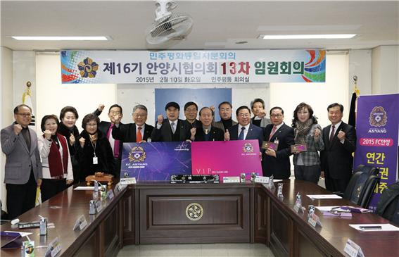 ¹ÎÁÖÆòÅë¾È¾ç½ÃÇùÀÇȸ(ȸÀå ÀÌ»óÈ£)´Â Áö³­ 10ÀÏ ¿ÀÀü ½Ãû º°°ü2Ãþ ¹ÎÁÖÆòÅëȸÀǽǿ¡¼­ ÀÌ»óÈ£ ȸÀå, Àå°æ¼ø °í¹®, ±è±âȯ ¼ö¼®ºÎȸÀå, À̼÷¶õ ¿î¿µÀ§¿ø, ±è¿ë°ï »ç¹«±¹Àå µî 20¿©¸íÀÌ ¸ðÀΰ¡¿îµ¥ 2015 FC¾È¾ç ¿¬°£È¸¿ø±Ç VIP 3¸Å, ÀÏ¹Ý 7¸Åµî 2,200õ¿øÀÇ È¸¿ø±ÇÀ» ±¸¸Å Çϰí FC¾È¾ç ±¸´ÜÀÇ È°¼ºÈ­ ¹× Ã౸ºÕ Á¶¼º¿¡ ¾ÕÀå¼­±â·Î ´ÙÁüÇÏ¿´´Ù.
