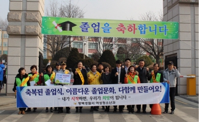 ÀÌ ³¯ Ä·ÆäÀο¡´Â ÇлýµéÀÇ »õ·Î¿î ½ÃÀÛÀ» ÃàÇÏÇϸç Á¹¾÷½Ä ½ÃÁð ¹Ð°¡·ç »Ñ¸®±â, ¾Ë¸öÀÌ µÇ°Ô ÇÏ´Â ÇàÀ§ µî ºÒ°ÇÀüÇÑ Á¹¾÷½Ä ¹®È ¹× Çб³Æø·ÂÀ» ±ÙÀýÇϱâ À§ÇÑ È«º¸¹°Ç° ¹× ¾È³»¹®À» ¹èºÎÇÏ¿´´Ù.