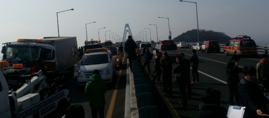 °æÂûÀº ÃÖÀü¹æ¿¡¼­ 10´ë, Áß°£¿¡¼­ 12´ë, ³ª¸ÓÁö Â÷·® 80¿© ´ë°¡ ÀÕµû¶ó Ãßµ¹ÇÑ °ÍÀ¸·Î º¸°í ÀÖÀ¸¸ç. ¡°Â£Àº ¾È°³·Î ½Ã¾ßÈ®º¸°¡ ¾î·Á¿î »óȲ¿¡¼­ ¾ÈÀü°Å¸® ¹ÌÈ®º¸ µîÀ¸·Î ÀÎÇØ ¹ß»ýÇÑ ´ëÇü ±³Åë»ç°í·Î ¿¹ÃøÇϰíÀÖÀ¸¸ç. °æÂûÀº ¿µÁ¾´ë±³ ¿î¿µ»çÀÎ ½ÅÇ×°øÇÏÀÌ¿þÀ̸¦ »ó´ë·Î ¾ÈÀüÁ¶Ä¡°¡ ÀûÀýÇß´ÂÁöµµ ¼ö»çÇÒ °èȹÀÌ´Ù.