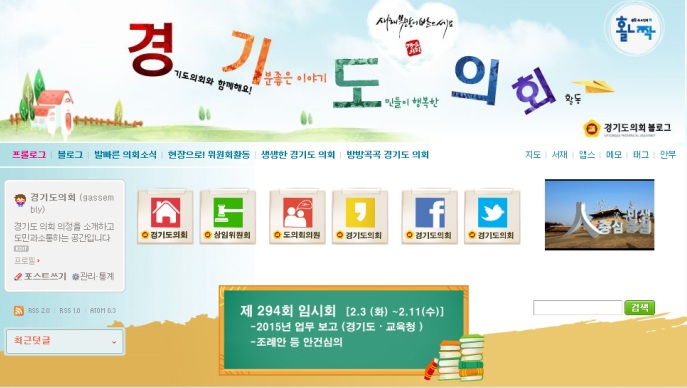 ºí·Î±× ¸Þ´º´Â Å©°Ô ¡®¹ßºü¸¥ ÀÇȸ¼Ò½Ä¡¯, ¡®ÇöÀåÀ¸·Î! À§¿øÈ¸È°µ¿¡¯, ¡®»ý»ýÇÑ °æ±âµµÀÇȸ¡¯, ¡®¹æ¹æ°î°î °æ±âµµÀÇȸ¡¯·Î ±¸¼ºµÇ¾î ÀÖ´Ù.