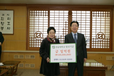 86¼¼ÀÇ ÇҸӴϰ¡ Æò»ý ¸ðÀº 1¾ï¿øÀ» ¸ð±³ÀÎ Àü³²´ëÇб³¿¡ ¹ßÀü±â±ÝÀ¸·Î ³»³õ¾Ò´Ù.