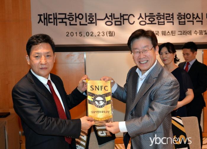 ä¾ð±â Àçű¹ÇÑÀÎȸÀåÀº ¡°¼º³²FC¿Í ¿©·¯°¡Áö ÁÁÀº »ç¾÷À» ÇÔ²² ÇÏ°Ô µÅ À̹ø Çù¾àÀÌ ¶æ±í´Ù¡± ¸é¼ ¡°¼º³²FC°¡ Çѱ¹°ú ¾Æ½Ã¾Æ¸¦ ³Ñ¾î ¼¼°è¸í¹®±¸´ÜÀ¸·Î °Åµì³ª±æ ¹Ù¶õ´Ù¡±°í ¸»Çß´Ù.