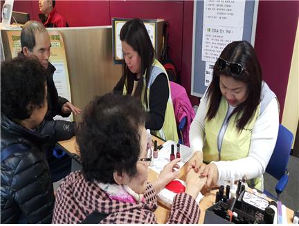¼º³²½Ã °áÈ¥ÀÌÁÖ¿©¼ºµé·Î ±¸¼ºµÈ ¡®µÎ¹«¸® ºÀ»ç´Ü¡¯Àº 2¿ù 25ÀÏ 10½Ã Áß¿ø±¸ »ó´ë¿øµ¿ Ȳ¼Û³ëÀκ¹Áö°ü¿¡¼­ ½Ã¼³ ÀÌ¿ë ¾î¸£½Å 30¸íÀ» ´ë»óÀ¸·Î ³×ÀÏ¾ÆÆ®¿Í ¼Õ ¸¶»çÁö ºÀ»ç¸¦ Çß´Ù.
