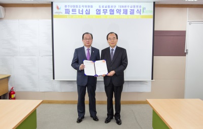 À̳¯ Çù¾à½Ä¿¡´Â ±èÀ±¼® ±¤ÁÖU´ëȸ »ç¹«ÃÑÀå°ú À念ÁÖ ±¤ÁÖ±³Åë¹æ¼Û º»ºÎÀåÀÌ Âü¼®Çß´Ù.
