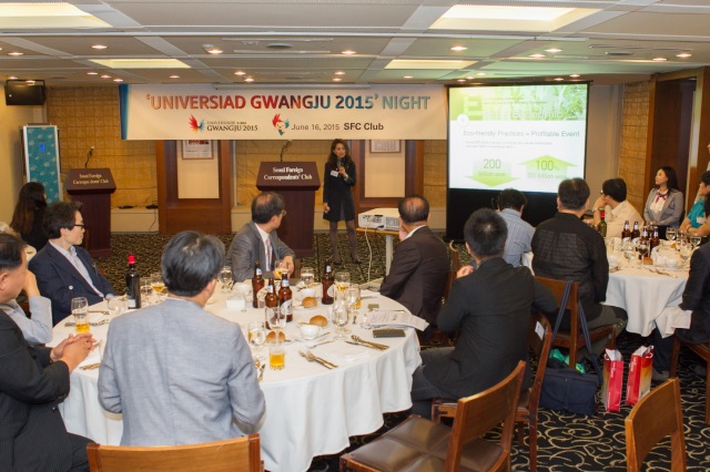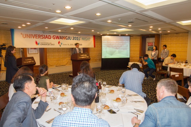 ±¤ÁÖU´ëȸ Á¶Á÷À§¿øÈ¸´Â 16ÀÏ ¿ÀÈÄ ¿Ü½Å±âÀÚŬ·´(¼­¿ï½Ã Áß±¸ ÅÂÆò·Î Çѱ¹ÇÁ·¹½º¼¾ÅÍ)¿¡¼­ ±èȲ½Ä Á¶Á÷À§¿øÀå, ±èÀ±¼® Á¶Á÷À§ »ç¹«ÃÑÀå, ¼­±â¿ø Á¶Á÷À§ ¹®È­Çà»çº»ºÎÀåÀÌ Âü¼®ÇÑ °¡¿îµ¥ ÁÖÇÑ ¿Ü½Å °£´ãȸ¸¦ °¡Á³´Ù. À̳¯ Çà»ç¿¡´Â ¼­¿ï¿Ü½Å±âÀÚ Å¬·´ ¾öÀçÇÑ È¸Àå(»ó¿ä ŸÀÓÁî)À» ºñ·ÔÇØ AP, AFP, µµÄì½Å¹®, ÀιÎÀϺ¸, ·ÎÀÌÅÍ µî ¿Ü½Å ÃëÀç⋅»çÁø±âÀÚ 40¿©¸íÀÌ Âü¿©ÇØ ±¤ÁÖU´ëȸ¿¡ ´ëÇÑ °ü½ÉÀ» ³ªÅ¸³Â´Ù. ¶ÇÇÑ ±¤ÁÖU´ëȸ ´ëÇлý ¿Â¶óÀÎ ¹æ¼Û±¹ÀÎ À¯´Ïºê·Î(Uni-Bro) °ü°èÀÚµéÀº ÆÊÇ÷¿À» ³ª´²ÁÖ¸ç À¯´Ïºê·Î¸¦ È«º¸Çß´Ù.