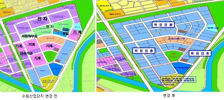 ¼ö¿ø»ê¾÷´ÜÁö, ºí·Ïº° ¾÷Á¾ Á¦ÇÑ Ç®¸°´Ù - ÀüÀÚ, Àü±â, ÀÚµ¿Â÷ºÎǰ µî 7°³ ¾÷Á¾ º¹ÇÕ¾÷Á¾ ÀÔÁÖ °¡´É |