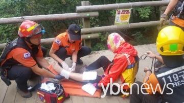 ½Å°íÀÚ´Â »êÇà Áß ¿ìÃø ´Ù¸®°¡ °ñÀýµÅ Á¶³­´çÇß´Ù°í ½Å°íÇß°í, ÀÌ¿¡ ¼ö¿ø¼Ò¹æ¼­ ³²ºÎ119±¸Á¶´ë¿Í ÀÌÀÇ119¾ÈÀü¼¾ÅÍ ±¸±Þ´ë¿øÀÌ Ãâµ¿ÇØ ÀÀ±Þóġ ¹× ±¸Á¶È°µ¿¿¡ ÀÓÇß´Ù.