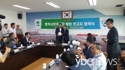 K3¸®±×¿¡¼­ ¶Ù°Ô µÉ ÆòÅýø¦ ¿¬°íÁö·Î ÇÏ´Â ½Ã¹ÎÃ౸´ÜÀÌ 5ÀÏ ¿ÀÀü ÆòÅÃÁ¾ÇտÀå ȸÀǽǿ¡¼­ ¿¬°íÁö Çù¾à½ÄÀ» °¡Á³´Ù.