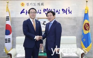 °æ±âµµÀÇȸ Á¤±â¿ ÀÇÀå(´õºÒ¾î¹ÎÁÖ´ç, ¾È¾ç4)Àº 9ÀÏ °æ±âµµÀÇȸ ÀÇÀå Á¢°ß½Ç¿¡¼ Çϳ²½Ã ´õºÒ¾î¹ÎÁÖ´ç Áö¿ªÀ§¿øÈ¸ ±è½ÃÈ À§¿øÀå°ú ¹Ú°æ±Ù »ç¹«±¹ÀåÀ» ¸¸³ª °æ±âµµÀÇȸ¿Í Çϳ²½Ã °£ »ó»ý¹ßÀü ¹æ¾È µîÀ» ³íÀÇÇß´Ù°í ¹àÇû´Ù.