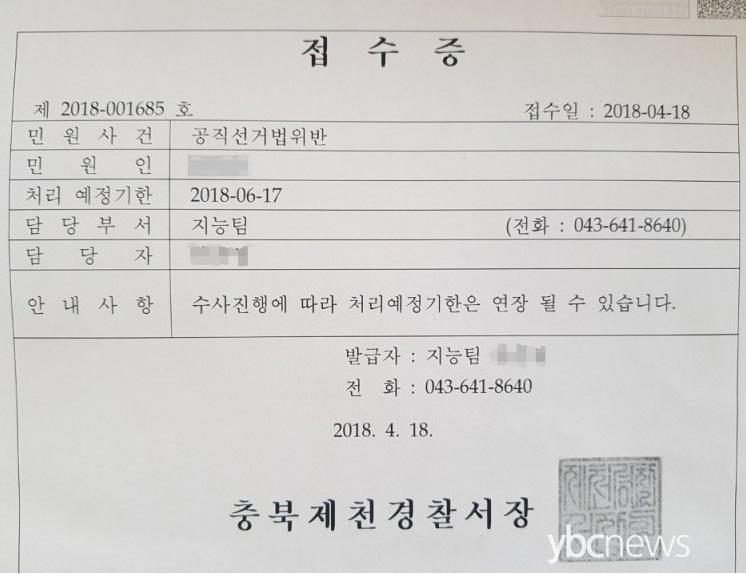 18ÀÏ A¾¾°¡ ÀÌ±Ù±Ô Á¦Ãµ½ÃÀåÀ» °øÁ÷¼±°Å¹ýÀ§¹ÝÀ¸·Î Á¦Ãµ°æÂû¼­¿¡ °í¹ßÀåÀ» Á¢¼öÇÑ °í¹ßÀå ĸó»çÁø.