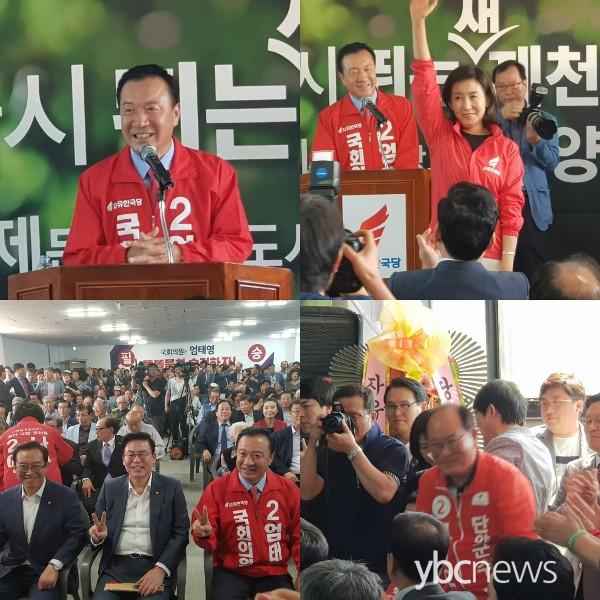26ÀÏ ÃæºÏ Á¦Ãµ½Ã ¾öÅ¿µÈĺ¸ ¼±°Å»ç¹«½Ç °³¼Ò½Ä¿¡¼­ ³ª°æ¿ø(À§ ¿À¸¥ÂÊ)ÀÇ¿ø,ÀÌÁ¾¹è(¾Æ·¡ ù ¹øÂ°)ÀÇ¿ø,Á¤¿ìÅà Àü ¿ø³»´ëÇ¥(¾Æ·¡ µÎ ¹øÂ°),·ùÇÑ¿ì ´Ü¾ç±º¼ö È帰¡ Âü¼®ÇÏ¿© ¾öÅ¿µ È常¦ ÁöÁö ¼±¾ðÀ» Çϰí ÀÖ´Ù.