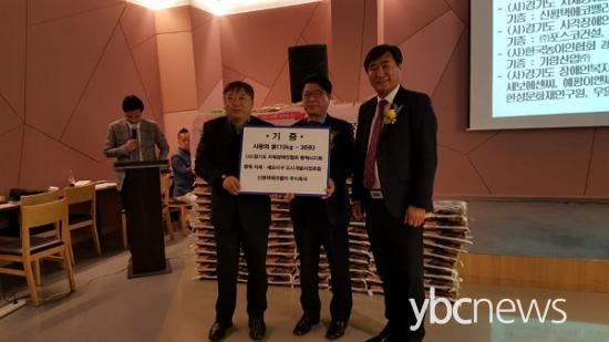 Á¶ÇÕ°ú ½ÃÇà´ëÇà»çÀÎ ½ÅÆòÅÿ¡Äڹ븮(ÁÖ) Çѱ¤¼± ´ëÇ¥¸¦ ºñ·ÔÇÑ Á¶ÇÕÀÇ Çù·Â¾÷üµéÀÌ ±âÁõÇÑ ½Ò 120Æ÷¸¦ (»ç)°æ±âµµ ÁöüÀå¾ÖÀÎÇùȸ ÆòÅýÃÁöȸ, (»ç)°æ±âµµ ½Ã°¢Àå¾ÖÀÎÇùȸ ÆòÅýÃÁöȸ, (»ç)Çѱ¹³ó¾ÆÀÎÇùȸ °æ±âµµÁöºÎ ÆòÅýÃÁöȸ, (»ç)°æ±âµµ Àå¾ÖÀκ¹Áöȸ ÆòÅýÃÁöȸ µî 4°³ ´Üü¿¡ °¢ 30Æ÷¾¿ ±âÁõÇÏ´Â Àü´Þ½Äµµ ÇÔ²² ÁøÇàÇÏ¿´´Ù.