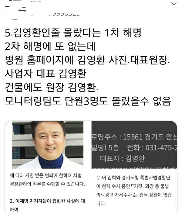 ÇÑÆí, ´©¸®²Ûµé »çÀÌ¿¡¼´Â "Ư»ç°æ ´ã´çÀÚµéÀÌ ÇØ´ç º´¿øÀÇ ¿øÀåÀÌ ±è¿µÈ¯ Àü ±¹È¸ÀÇ¿øÀ̶ó´Â »ç½ÇÀ» ¸ô¶ú´Ù"´Â °æ±âµµÀÇ ÇØ¸íº¸´Ù ȨÆäÀÌÁö»ó ÀÇ·á¹ýÀ§¹ÝÀ» ¹®Á¦ »ïÀº ¼ö»ç°ü°èÀÚ°¡ "ȨÆäÀÌÁö¿¡ ¸í½ÃµÈ ´ëÇ¥ÀÚ À̸§À» ¸ô¶ú´Ù´Â °Ç ¸»ÀÌ µÇÁö ¾Ê´Â ´Ù"´Â ¹Ý·ÐÀÌ ¿ÀÈ÷·Á ¼³µæ·ÂÀ» ¾ò°í ÀÖ´Ù´Â ¹ÝÀÀÀÌ´Ù.
