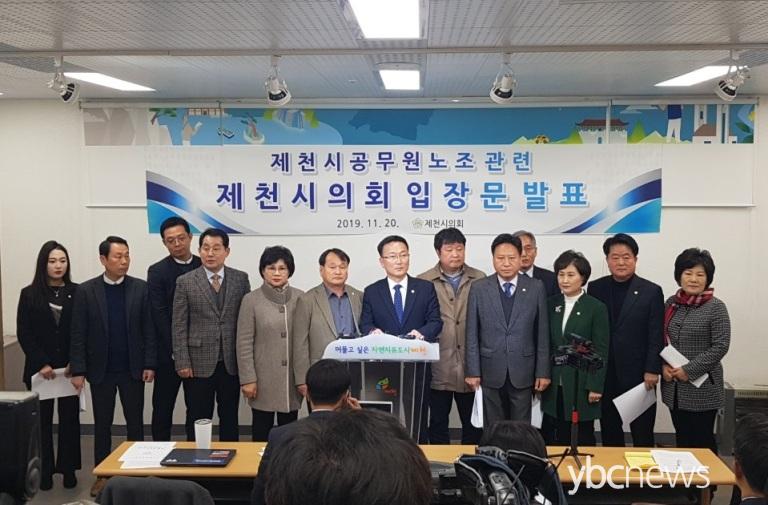 Á¦Ãµ½ÃÀÇȸ´Â 20ÀÏ ½Ãû ºê¸®ÇÎ ·ë¿¡¼­ ±âÀÚȸ°ßÀ» °®°í "Á¦Ãµ½Ã°ø¹«¿ø³ëÁ¶´Â ÀåÁ¦ºñ Áö¿ø°ú ¾È½ÄÈÞ°¡ Á¶·Ê°¡ ºÎ°áµÈ °Í¿¡ ´ëÇØ ÀÇ¿ø¿¡ ´ëÇÑ ÀÎ°Ý ¸ðµ¶°ú ÀÇ¿øµéÀÇ ¾öÁßÇÑ ÀÇȸȰµ¿À» Á¦¾àÇϰí ÀÖ´Ù"°í ÁÖÀåÇß´Ù.