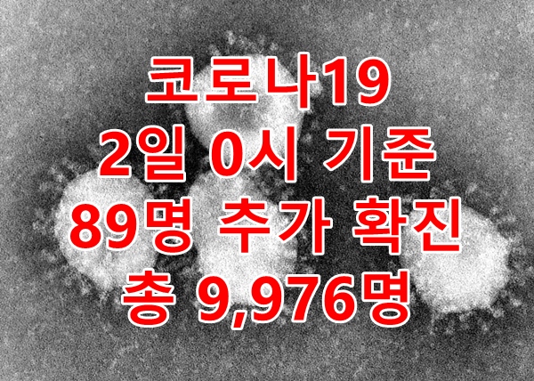 Á߾ӹ濪´ëÃ¥º»ºÎ(ÀÌÇÏ Áߴ뺻)¿¡ µû¸£¸é, 'Äڷγª19' È®ÁøÀÚ°¡ 2ÀÏ, 0½Ã ±âÁØ 89¸íÀÌ Ãß°¡ È®ÁøµÅ, ÃÑ 9,976¸íÀ̶ó°í ¹àÇû´Ù.
