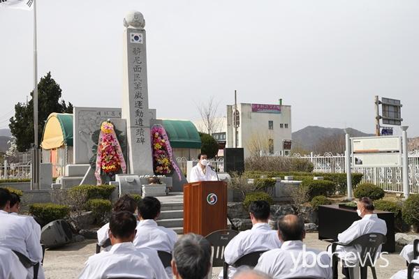 Çà»ç´Â Á¶±æÇü ÃæÁÖ½ÃÀå, ±ÇÁ¤Èñ ÃæÁÖ½ÃÀÇȸ ºÎÀÇÀå, À±ÇüÁß ÃæºÏºÏºÎº¸ÈÆÁöûÀå, ±¤º¹È¸¿ø µî 50¿© ¸íÀÌ Âü¼®ÇÑ °¡¿îµ¥ ¾Ö±¹¼±¿¿¡ ´ëÇÑ ÇåÈ ¹× ºÐÇâ, µ¶¸³¼±¾ð¼ ³¶µ¶, ±â³ä»ç, Çå½Ã ³¶µ¶, ¸¸¼¼»ïâ ¼øÀ¸·Î °ÅÇàµÆ´Ù.