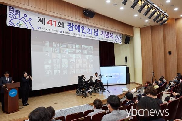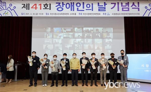 ½ÄÀü°ø¿¬ (»ç)Ãæ³²½Ã°¢Àå¾ÖÀο¬ÇÕȸ ¾Æ»ê½ÃÁöȸ(ȸÀå ±è¿µµ·)ÀÇ ¹êµå ¡°º¸¸´°í°³¡±ÀÇ ½ÃÀÛÀ¸·Î, Àå¾Ö¸¦ ±Øº¹Çϰí ÀÚ¸³¡¤ÀçȰÀÇ ¸ð½ÀÀ» º¸¿©ÁØ ¸ð¹üÀå¾ÖÀÎ 4¸í°ú Áö¿ª»çȸ¿¡¼ »ç¶û°ú ºÀ»çÁ¤½ÅÀ¸·Î Àå¾ÖÀκ¹Áö¿¡ ±â¿©ÇÑ À¯°øÀÚ 5¸íÀÌ ¾Æ»ê½ÃÀå ǥâÀ» ¼ö»óÇßÀ¸¸ç, Àå¾ÖÀδÜü¿Í ½Ã¼³¿¡¼ ¿½ÉÈ÷ ºÀ»çÇϰí Àå¾ÖÀÎ º¹ÁöÁõÁø¿¡ ³ë·ÂÇÑ Á¾»çÀÚ ¹× º¹ÁöÀ¯°øÀÚ 5¸íÀÌ ¾Æ»ê½ÃÀÇȸ ÀÇÀå, ±¹È¸ÀÇ¿ø ǥâÀåÀ» ¼ö»óÇß´Ù.