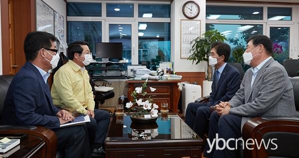 ¿À¼¼Çö ¾Æ»ê½ÃÀåÀÌ 28ÀÏ ´ëÇÑÀü¹®°Ç¼³Çùȸ ¼¼Á¾½Ã¡¤ÃæÃ»³²µµÈ¸(ȸÀå ¹ÚÁ¾È¸)¾Æ»ê½Ã¿î¿µÀ§¿øÈ¸(À§¿øÀå ÀÌÁ¾¼º)¿Í Áö¿ª Àü¹®°Ç¼³¾÷ü Ȱ¼ºÈ­¸¦ À§ÇÑ °£´ãȸ¿Í ÈÄ¿ø±Ý Àü´Þ½ÄÀ» ÁøÇàÇß´Ù.