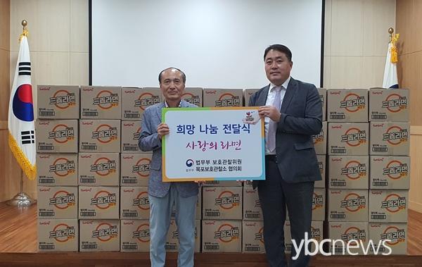 À̹ø Çà»ç´Â ¹ý¹«ºÎ º¸È£°üÂûÀ§¿ø ¸ñÆ÷º¸È£°üÂû¼Ò ÇùÀÇȸ ÈÄ¿øÀ¸·Î ¸¶·ÃµÈ ¿øÈ£ ¹°Ç°(¶ó¸é 45¹Ú½º, ÃÑ 110¸¸¿ø »ó´ç)À», »ý°è¿¡ ¾î·Á¿òÀ» °Þ°í ÀÖ´Â º¸È£°üÂû ´ë»óÀÚ 25¸í¿¡°Ô Áö¿øÇϱâ À§ÇØ ¸¶·ÃµÇ¾ú´Ù.