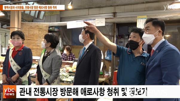 Á¤Àå¼± ÆòÅýÃÀå°ú ½ÃÀÇȸÀÇ¿øµéÀÌ Ãß¼® ¸íÀýÀ» ¸Â¾Æ ¼Ò»ó°øÀÎÀ» °Ý·ÁÇϰí Áö¿ª°æÁ¦ Ȱ¼ºÈ¸¦ À§ÇØ °ü³» ÀüÅë½ÃÀåÀ» ¹æ¹®Çß½À´Ï´Ù.