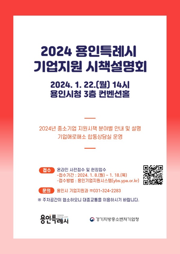 ¿ëÀÎÆ¯·Ê½Ã(½ÃÀå ÀÌ»óÀÏ)´Â ±ÝÀ¶‧¼öÃâ‧¿¬±¸°³¹ß µî ´Ù¾çÇÑ ±â¾÷Áö¿ø Á¤Ã¥ Á¤º¸¸¦ ¼Ò°³ÇÏ´Â ¡®2024³â Áß¼Ò±â¾÷ Áö¿ø½ÃÃ¥ ÇÕµ¿ ¼³¸íȸ¡¯¸¦ 22ÀÏ ½Ãû ÄÁº¥¼ÇȦ¿¡¼ ¿¬´Ù°í 12ÀÏ ¹àÇû´Ù.